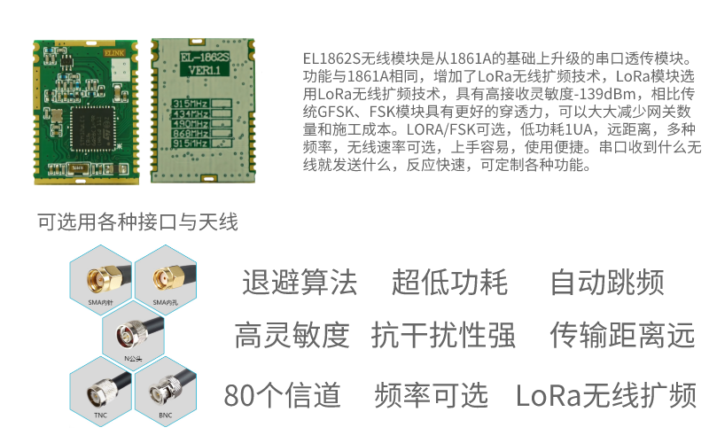 抗干擾性強(qiáng):協(xié)議里面有LBT的功能,基于aloha的方式,有自動的頻點(diǎn)跳轉(zhuǎn)和速率自適應(yīng)功能